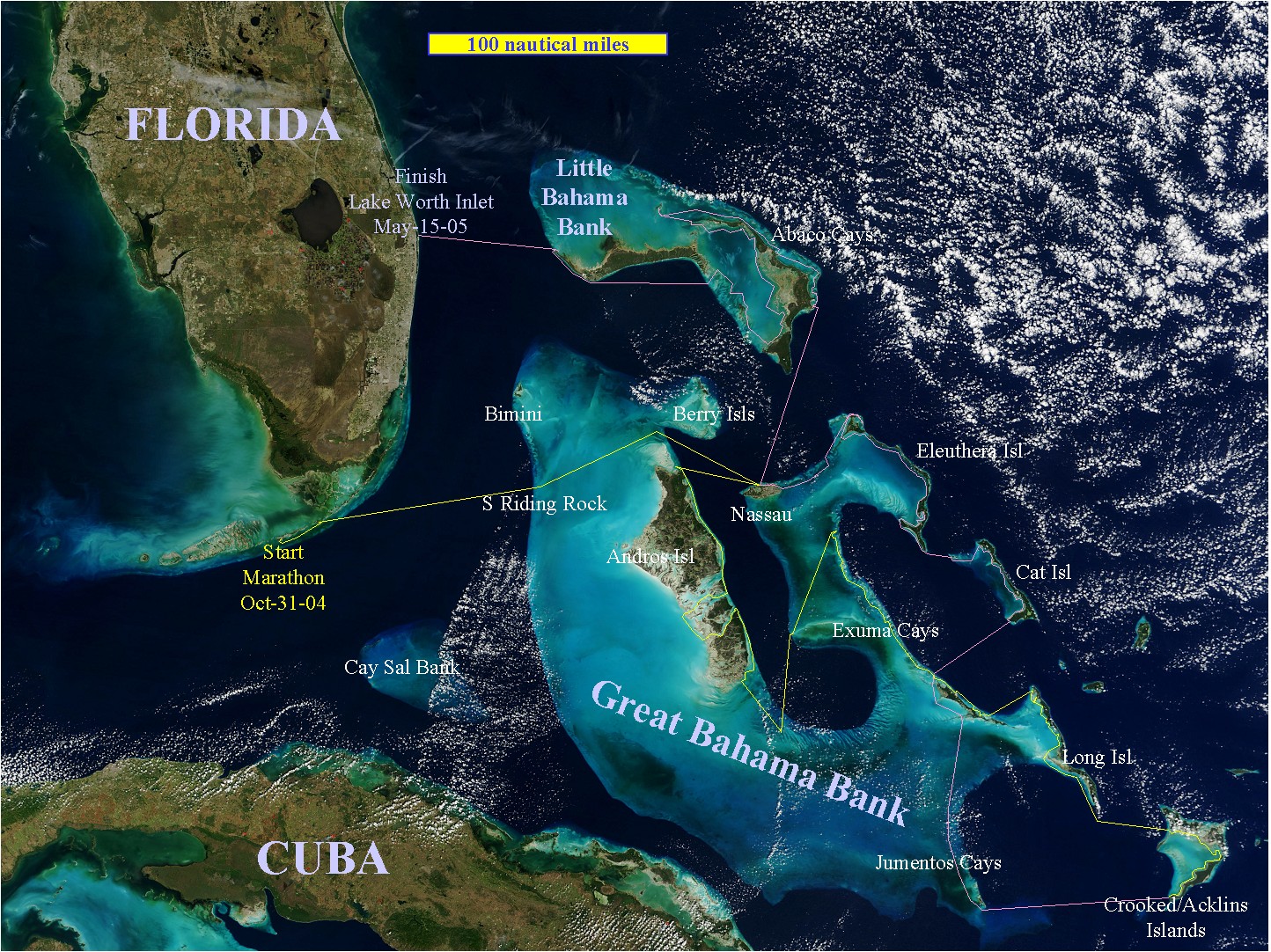 to South Riding Rock on the western edge of the Great Bahama Bank. This