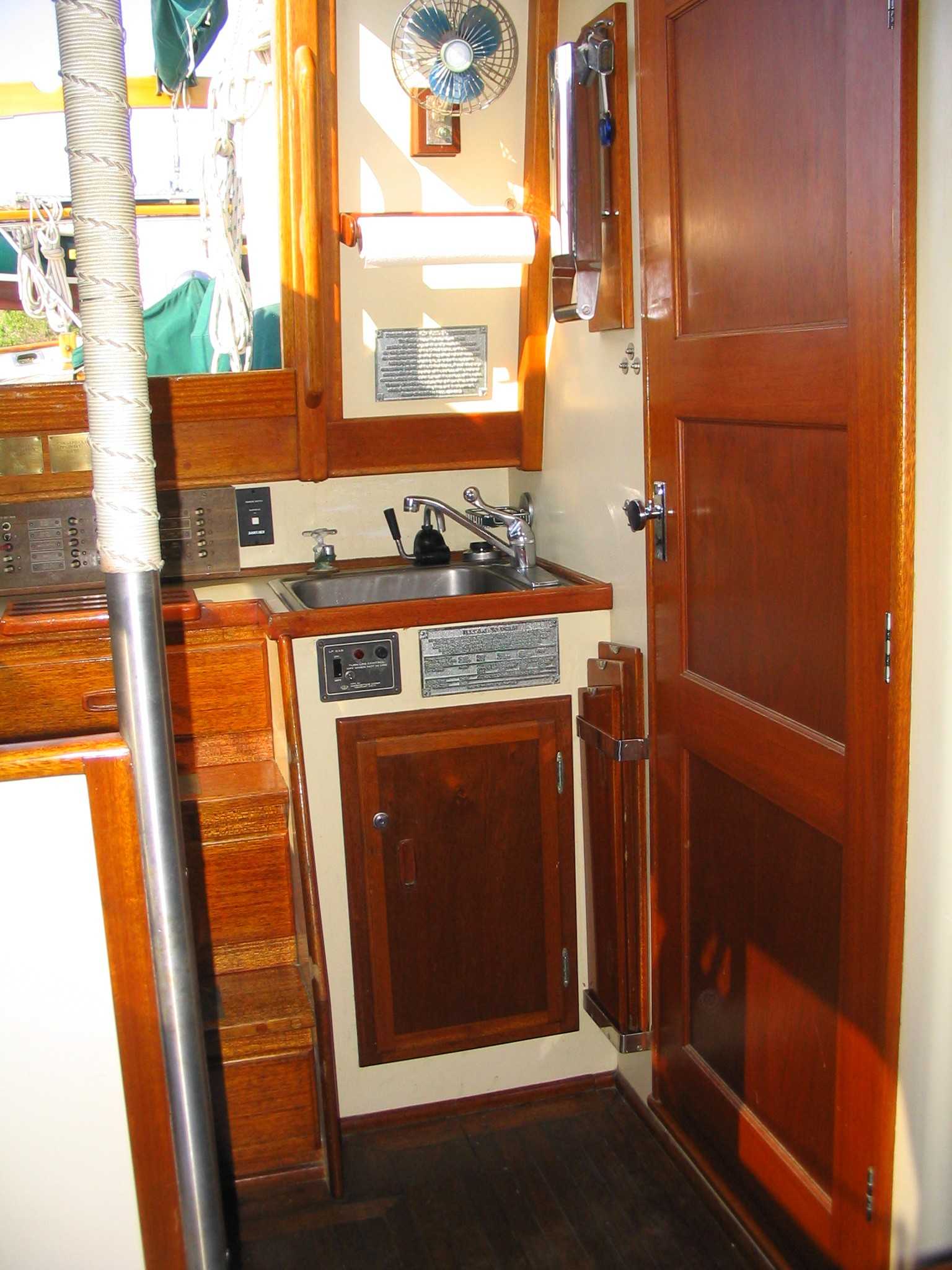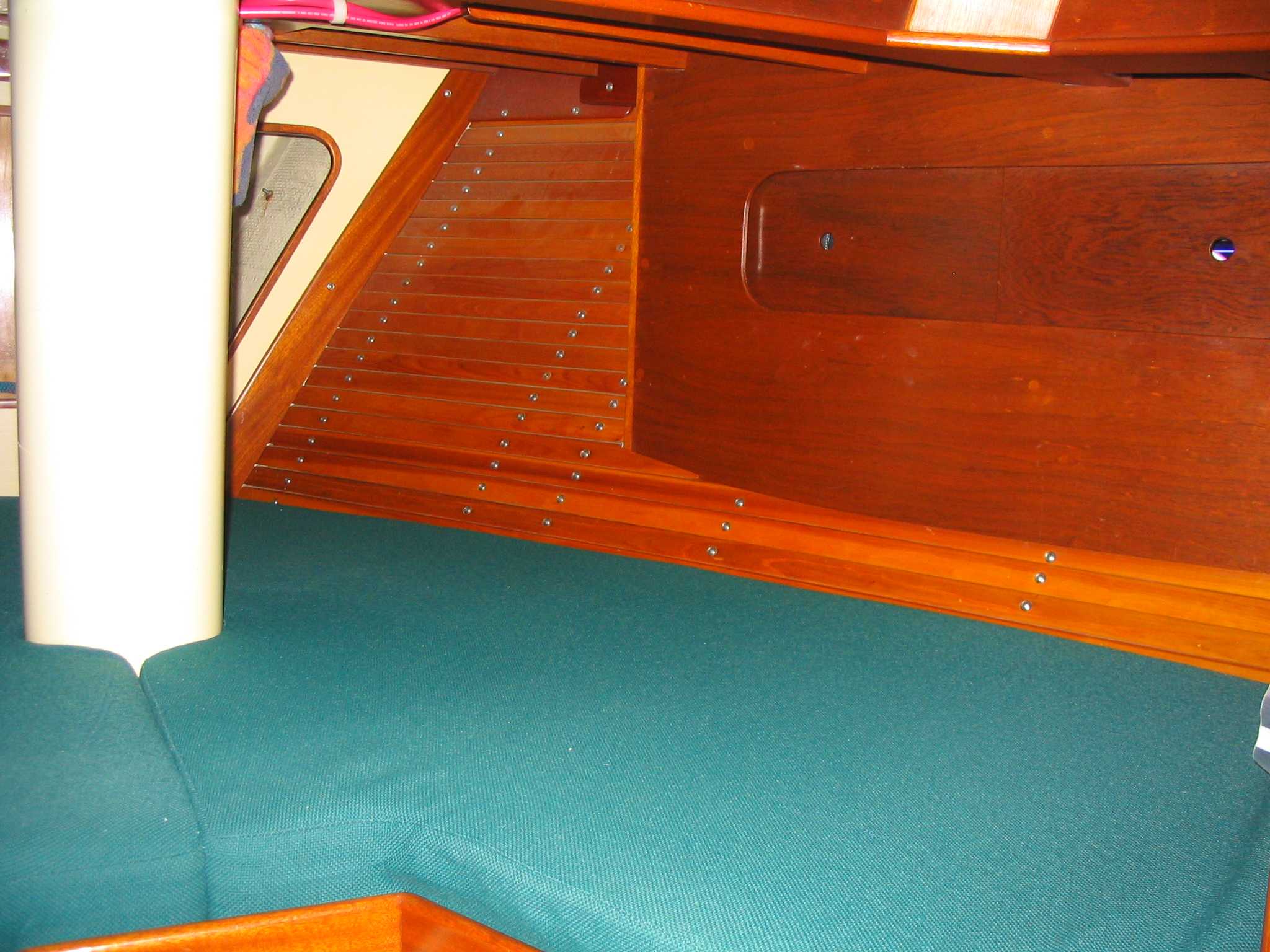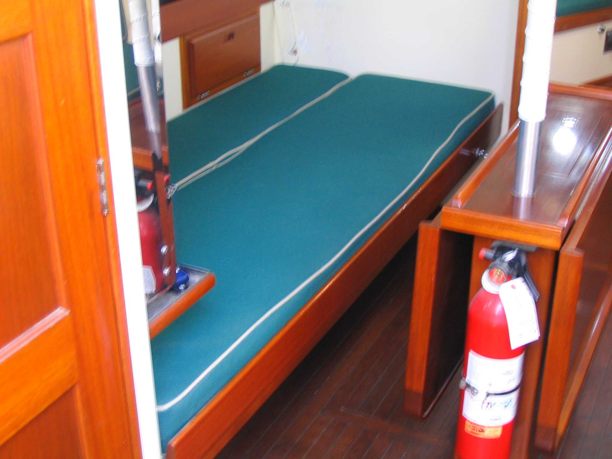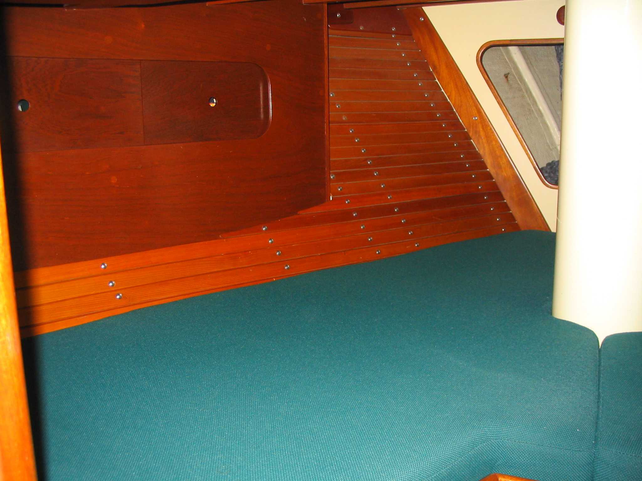 V-berth is equipped with a good-sized storage locker that does not intrude